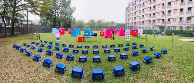 戶外樹蔭:運用寬敞戶外及樹蔭下,提供座椅聽講與休息,減少豔陽高溫照射。