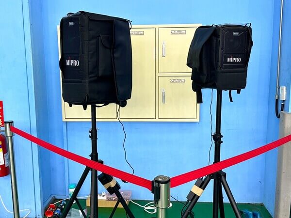 【音響設備】擴音機三組(七支手握無線麥克風+二支耳掛)本團隊擴音機不做任何單獨租借(租用)服務,僅以本團隊(公司)客戶帶領為主。每項競賽進行時,均透過藍芽方式傳輸播放不同歌曲,其擴音機組設備於外場帶領時,將依照場地空間與人數作適度調整攜帶前往,其規格如下: