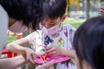 學校場地佈置遊戲設備及道具,九組班級同時進行(台中岸裡國小)