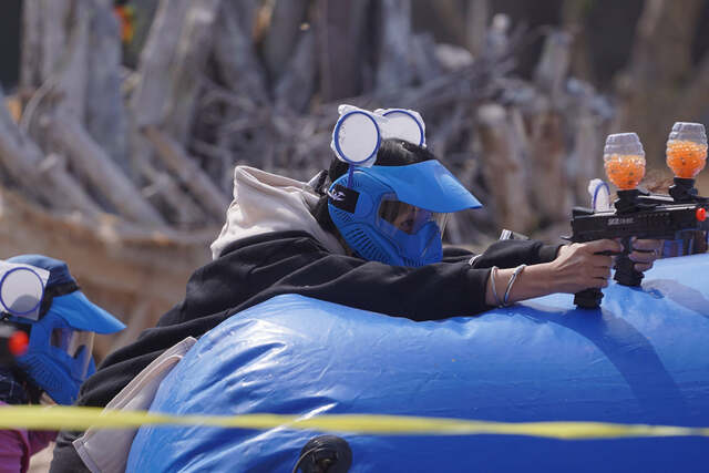 4.固定靶射擊後之人員(含老師),立即進行水彈對戰(先配戴面罩領取水彈槍)。