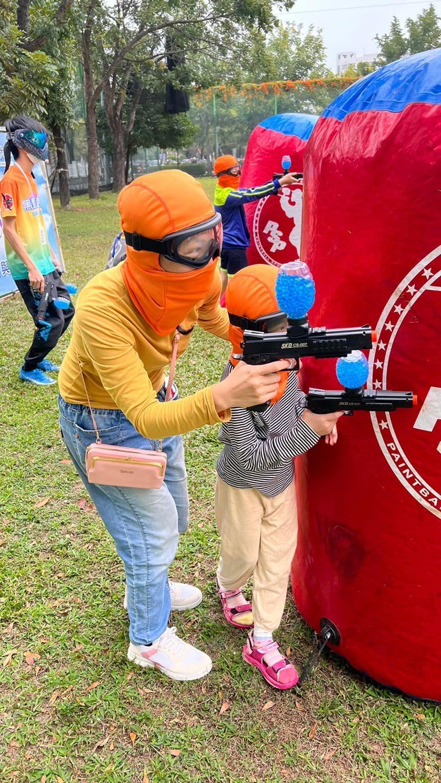 接下來說明的就是水彈對戰活動,四組孩童每人均可對戰三場,活動場地為南應大專屬漆彈場,場地為草地性質,其空間平坦寬闊,任何戶外活動安全無慮,活動水彈遮蔽物掩體我親自規劃與搭建以:漆彈充氣掩體+沐浴帳,此規格...全台唯一!三場對戰方式均不同,搭配我近期購買水彈專用盾牌,相信孩子們一定有更歡樂、刺激回憶,對戰過程中油我全程主持帶領,且安排教練手機攝影與拍照,活動後完全公開上傳【熊麻吉冬夏令營】,工所有孩童與家長瀏覽及下載。