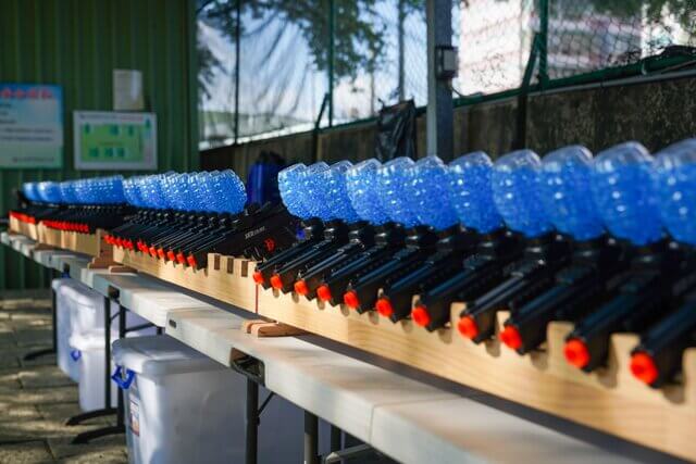 如團體、安親班、補習班人數重多時,單純的水彈對戰對熊教練與團隊來說太簡單了,因為我們在裝備完善、人力充足、獨特操作流程下,比一般活動場地至少效率高出二倍,因此,免費團康活動與趣味競賽才能襯托與呈現出熊麻吉活動團隊價值。雖然熊教練針對安親班夏令營(冬令營)免費,但我們的裝備至少六組,而且能一次同時進行,每組還提供一名工作人員一起協助、指導、同樂。其次,熊教練所規劃團康活動目前共計二十項,並且完全公開呈現於網站中,可供所有安親班(補習班)班主任參考選擇,每項團康活動會考量:參與者年齡、場地大小、活動動線、安全防疫等考量。如照片中所呈現出,團康活動道具都是利用中午用餐後,所有工作人員一起準備就緒,我們不會因為參與者為年齡較小孩童,因此在活動品質與規格有所降低,因為態度養成到哪裡都是如此,這就是團隊基本信念,相反的越是年齡較低孩童,我們越須謹慎保護兒童安全。