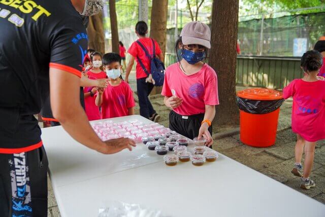 對於團隊來說這是第二場夏令營活動舉辦,免費點心提供都是各安親班夏令營活動確定後,熊教練特別掏腰包來贈送給每位師生,第一場點心為乳酪布丁有很多孩子不敢品嚐,因此改為多種口味果凍,此果凍為團隊隊員阿節烘焙師親手製作,也是熊教練為隊員宣傳行銷方式之一,雖然因疫情考量讓孩子們在現場食用完畢(也同時考慮塑膠杯善後處理),家長無法親自品嚐體驗,但我們的溫馨都是一點一滴的累積,不求任何商業考量。